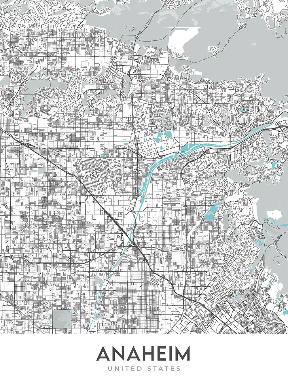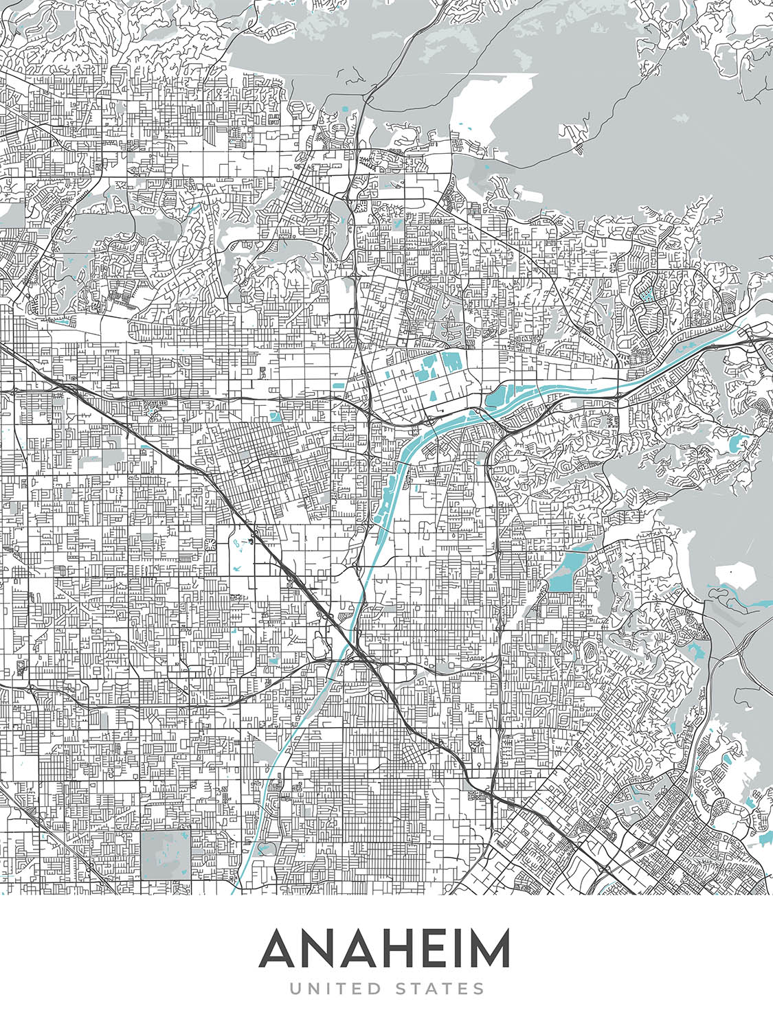 Whether you're a local resident, a tourist, or simply someone who appreciates beautiful maps, this map of Anaheim is sure to impress. It is a unique and stylish way to explore the city and its surroundings, and it makes a great gift for anyone who loves maps or Anaheim.
