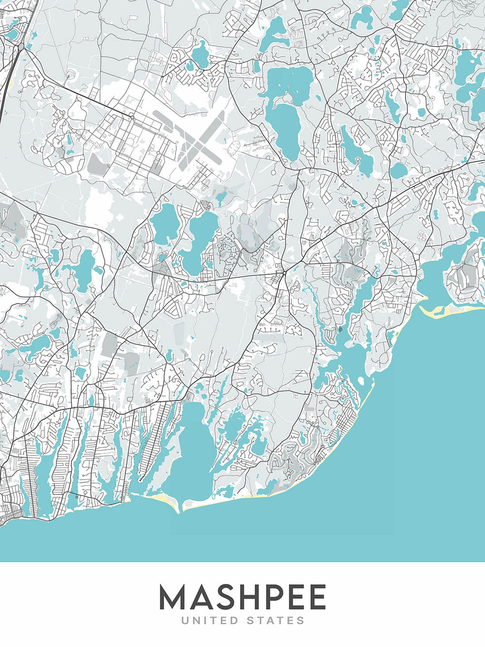 The Mashpee map is a modern, detailed street map of the city, created by The Unique Maps Co. in 2024. The map is a celebration of the city, its streets, landmarks, and neighborhoods. It is a beautiful and informative piece of art that will make a great addition to any home or office.
