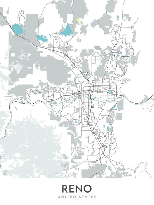 Modern City Map of Reno, NV: Downtown, University, Truckee River, I-80, US-395