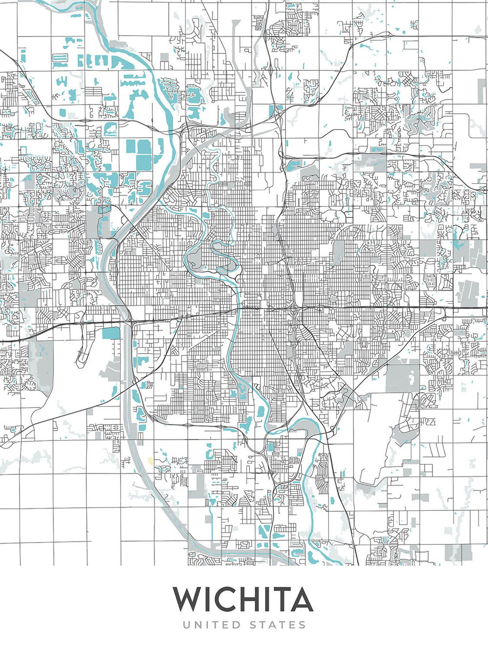 This original creation by The Unique Maps Co. features unique cartography, modern design, and a striking color palette that will complement any home or office décor. The map is printed on high-quality paper and is available in a variety of sizes to suit your needs. Whether you're a local resident, a visitor, or simply someone who loves maps, this map of Wichita is a must-have.