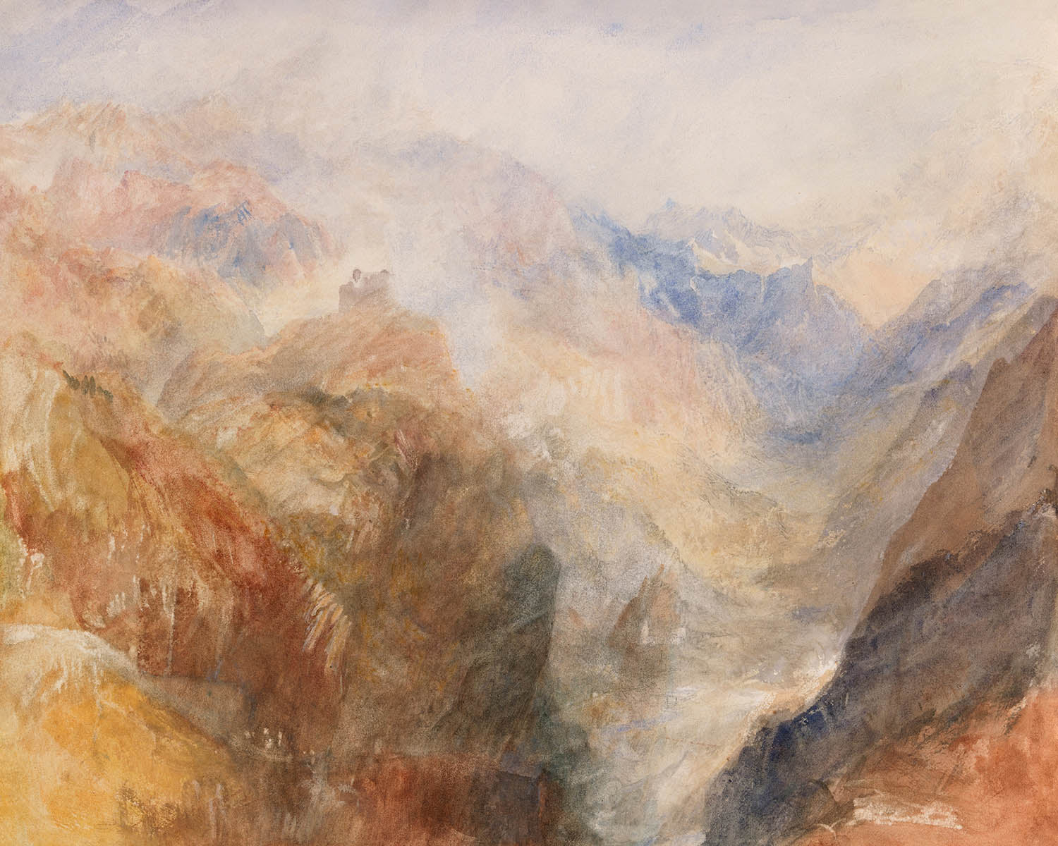 Turner—often called the “painter of light”—was one of Britain’s greatest Romantic artists. Celebrated for his radical handling of watercolor and oil, he transformed landscape into a vehicle for emotion and awe. By the 1830s his travels through the Alps honed a masterful grasp of atmosphere, transparency, and distance, influencing generations of landscape painters.