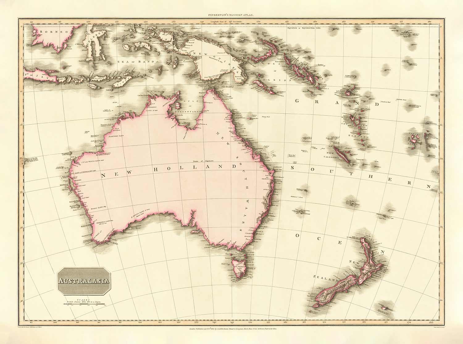 At the time, of course, Australia was still called New Holland - and Tasmania was called Van Dieman's Land. New Zealand has always been New Zealand, though!