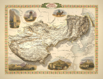 John Tallis, renowned as one of the last great decorative mapmakers, imbued his works with a sense of wonder and discovery. His maps are distinguished not only by their geographic precision but also by their ornate embellishments—here, a series of exquisite vignettes surround the map, each capturing the spirit and grandeur of the lands depicted. From the majestic Dwelling of the Tessaling Lama to the imposing Fortress and Palace of the Dalai Lama, these illustrations evoke the mystery and allure that so fascinated Victorian audiences.