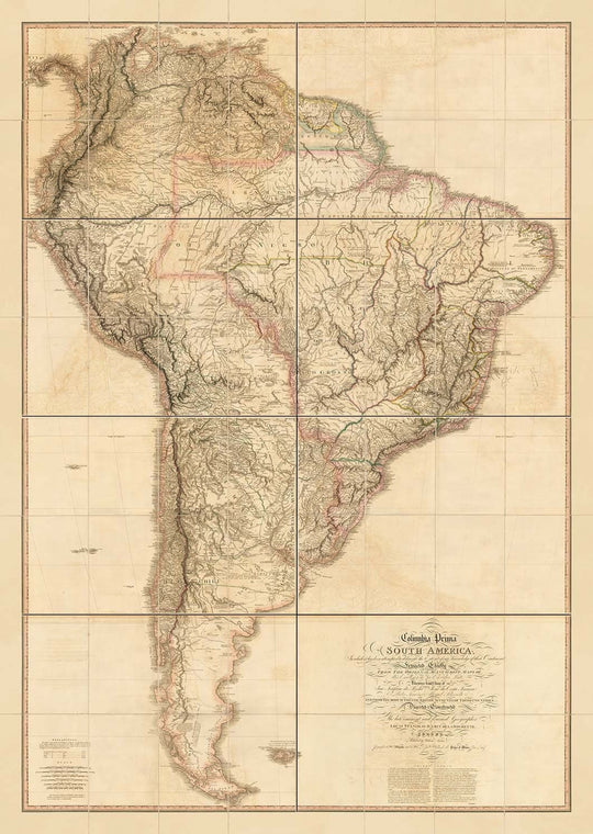 The map shows South America before its colonies and countries started to become independent republics from Spain later in the 1800s. Many of the geopolitical borders that you see on this map would be dramatically shifted over the next few decades. Take a look at how much land 'Chilli' and 'New Chilli' occupy! And instead of Colombia, there's New Grenada...
