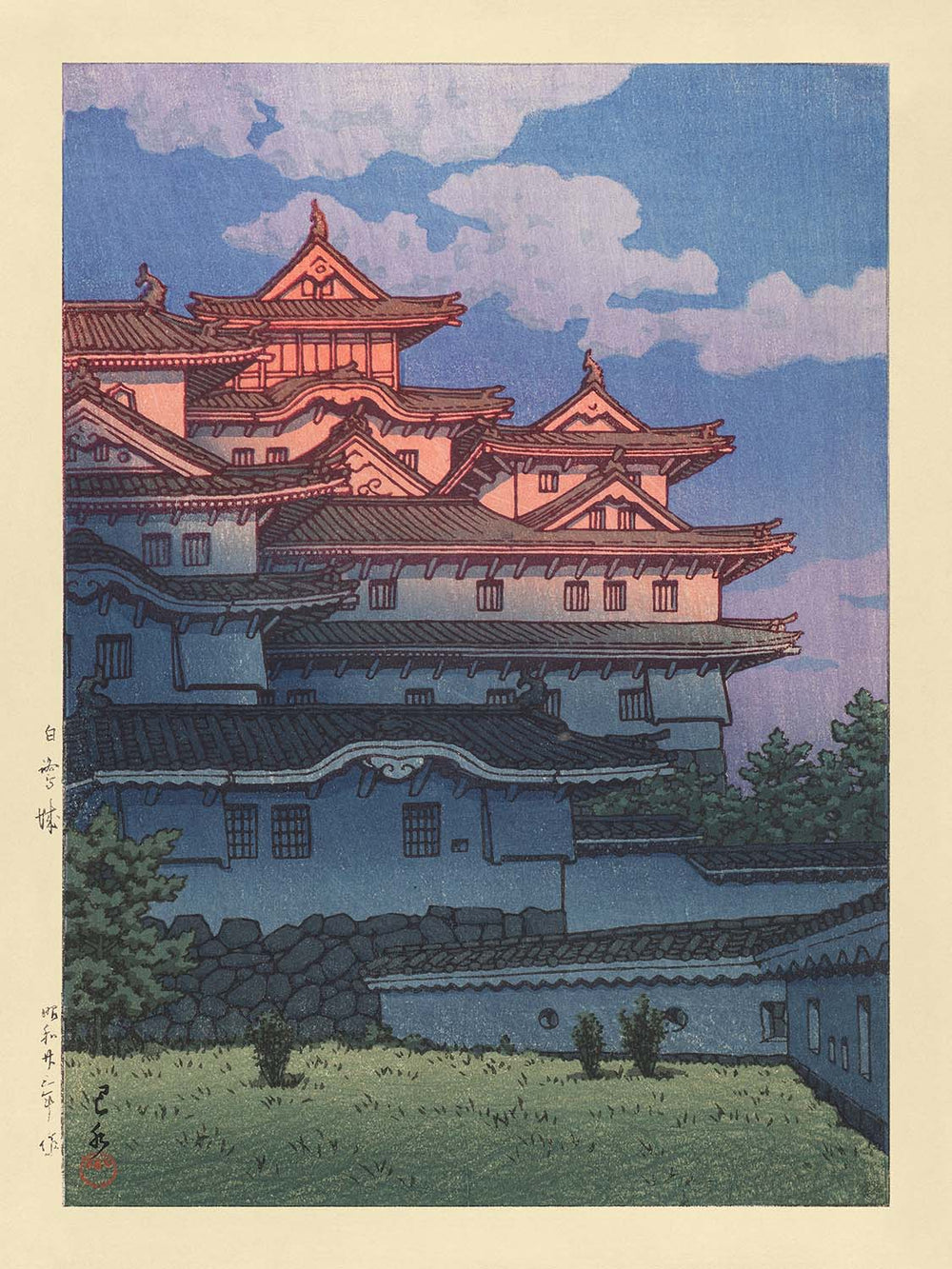 Sunset at Shirasagi Castle by Hasui Kawase, 1935
