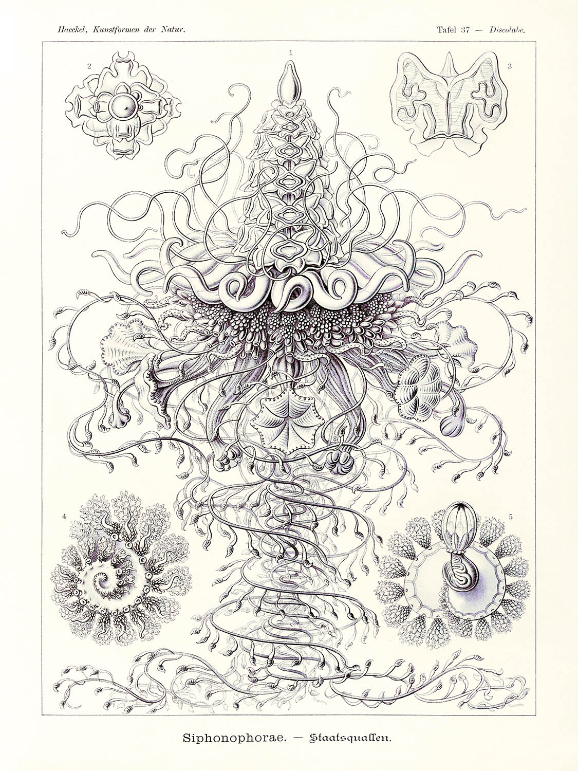 Many Tentacled Jellyfish (Siphonophorae Staatsquallen) by Ernst Haeckel, 1904
