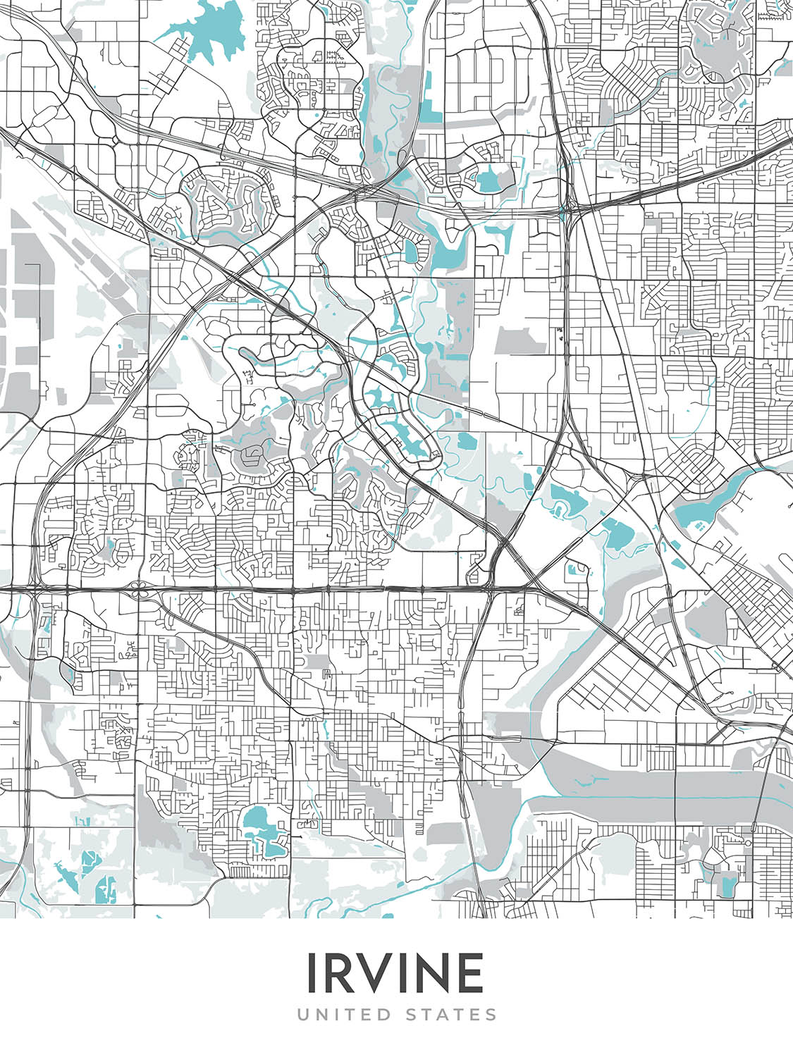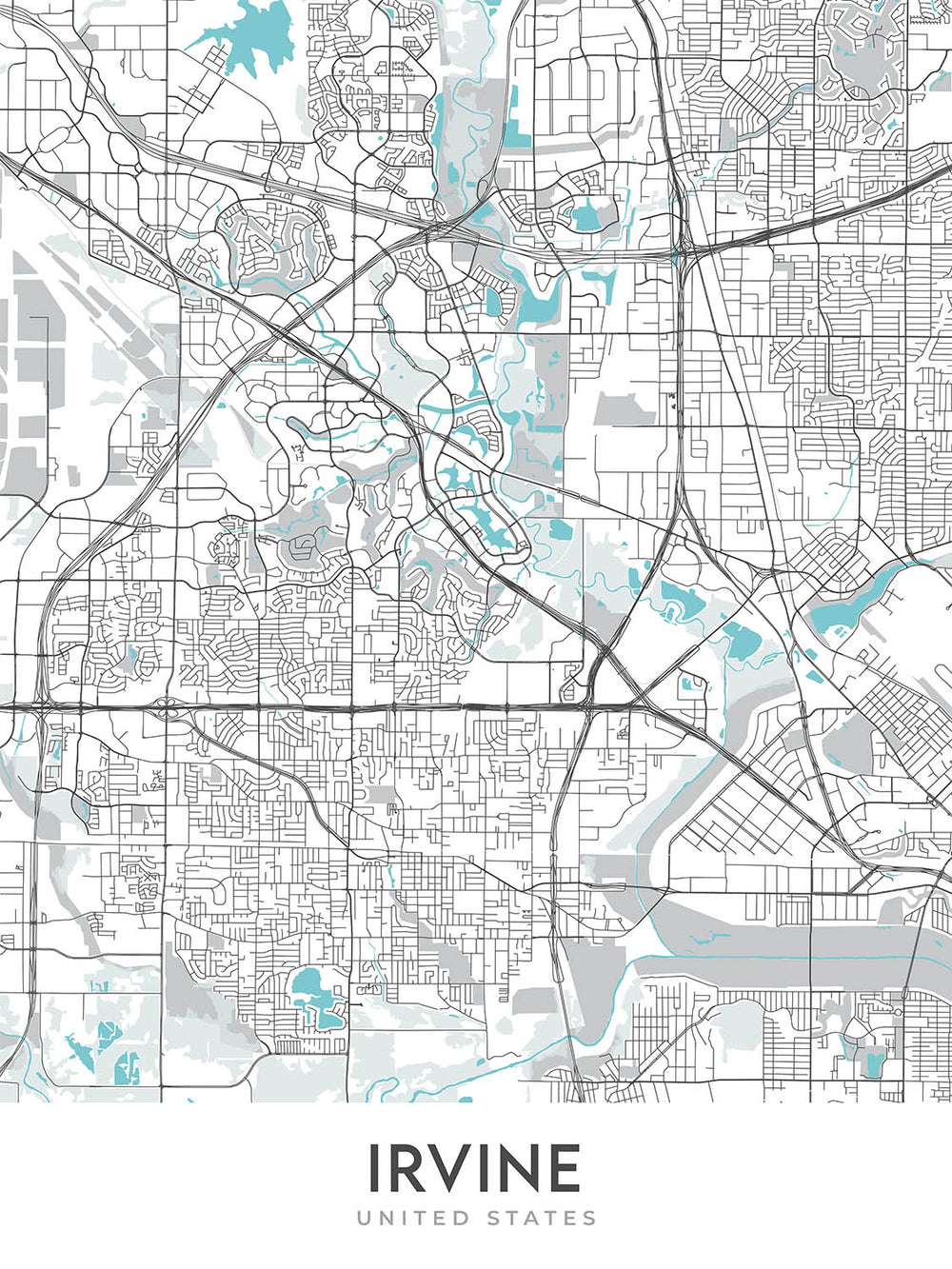 Modern City Map of Irvine, CA: Irvine, Northwood, Woodbridge, Quail Hill, Turtle Rock