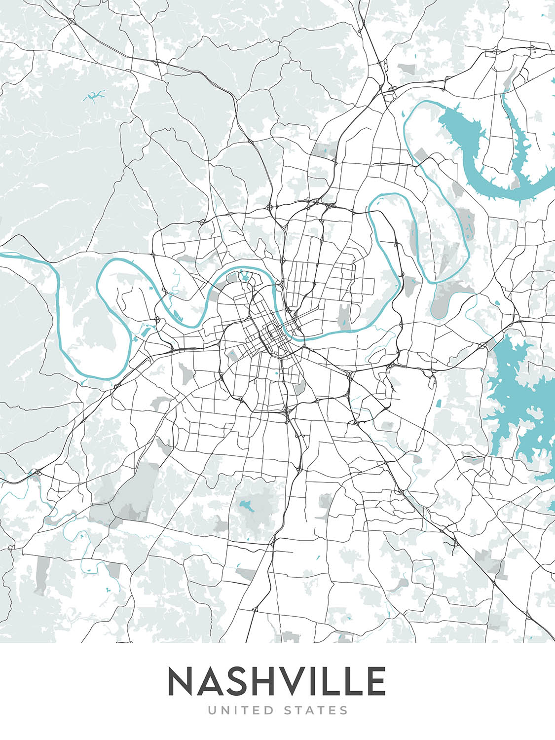 Modern City Map of Nashville, TN: Downtown, Music City Center, Vanderbilt, Germantown, Shelby Park