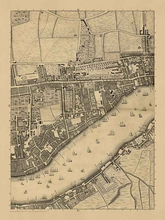 This map was originally published in 24 sheets. The map shown here is sheet G2, which focuses on the bit of the Thames that has Wapping and Shadwell on the north side and a small bit of Rotherhithe on the south side. It covers parts of Tower Hamlets and Southwark, and a big chunk of the Thames.