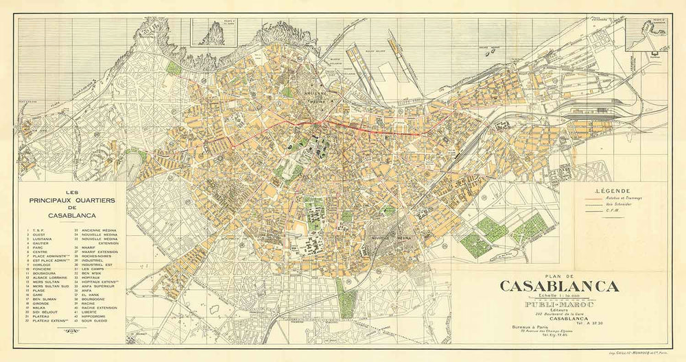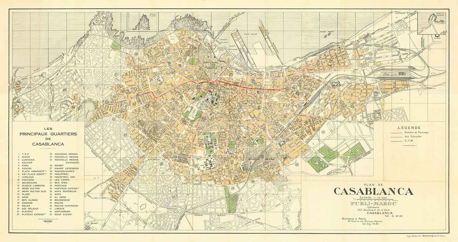 This wonderful old map of Casablanca was originally published in 1934. It was created by Gaillac-Monrocq.