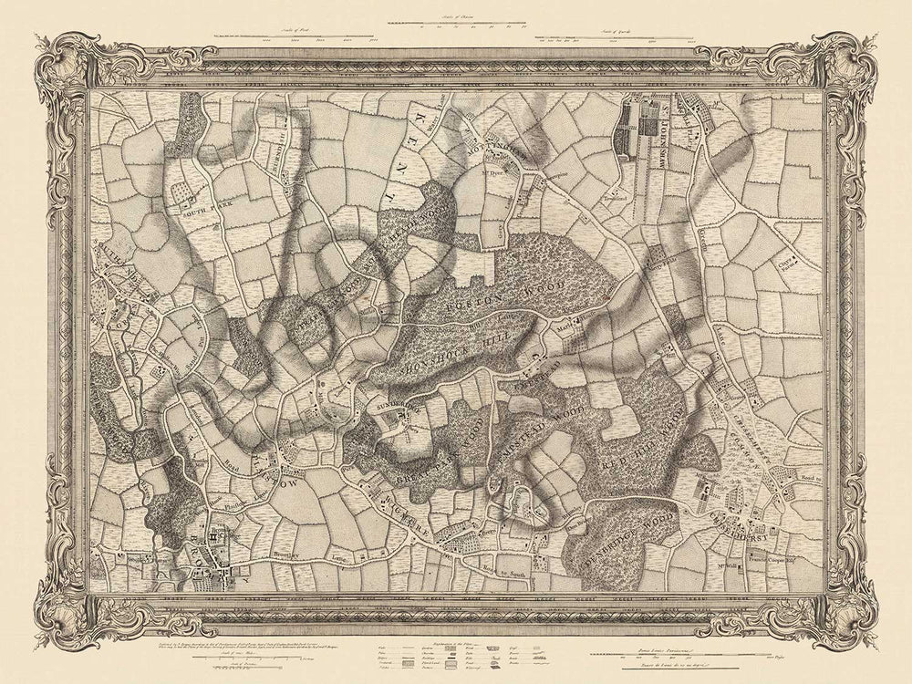 Old Map of South East London in 1746 by John Rocque: Chislehurst, Bromley, Mottingham, Southend, Widmore, SE6, SE12, SE9, SE13