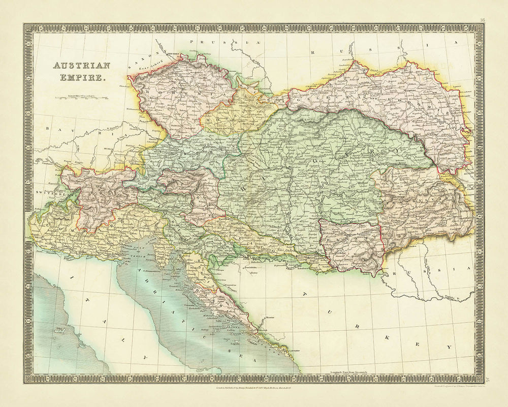 • Themes: Political boundaries and physical geography of the Austrian Empire.