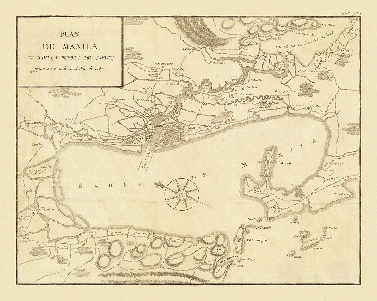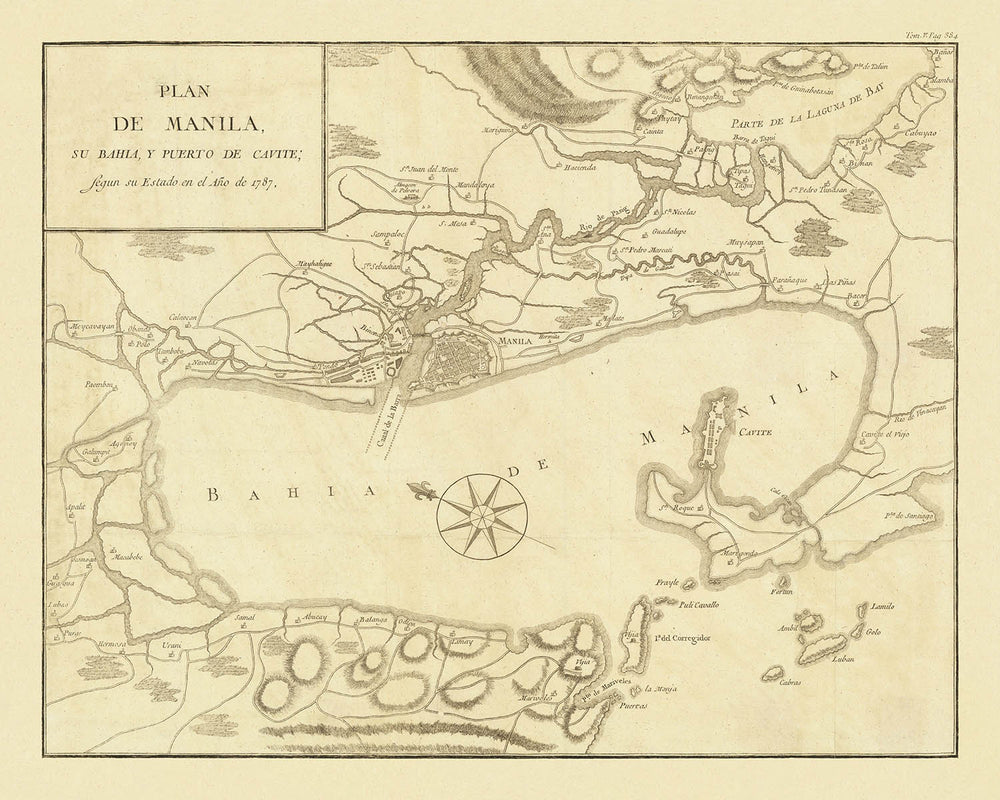 Discover the captivating allure of the "Plan de Manila, su Bahia y Puerto de Cavite; según su Estado en el Año de 1787," a masterpiece crafted by Pedro de Gongora y Lujan, Duque de Almodovar, in 1790. This exquisite map offers a detailed glimpse into the vibrant cityscape of Manila and its surrounding bay during a pivotal era in history. The map's meticulous design is rooted in the cartographic tradition of Father Pedro Murillo Velarde's earlier work, reflecting a rich tapestry of political and physical features that define this iconic region.
