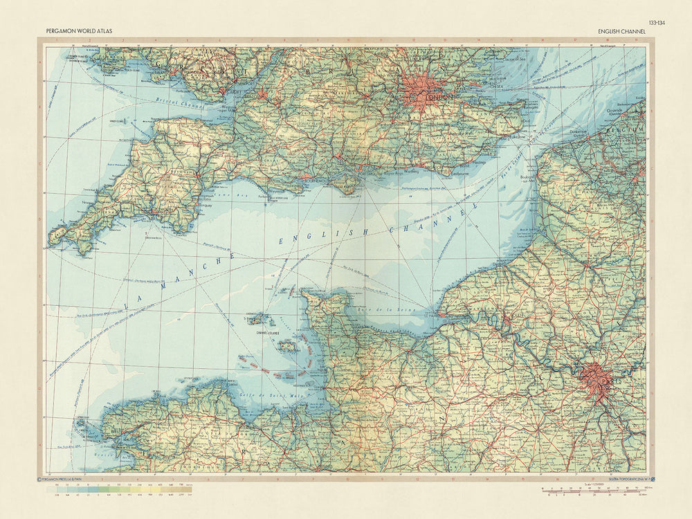 The 'English Channel' map, meticulously crafted by the Polish Army Topography Service in 1967, is a remarkable representation of the intricate political and physical landscape of the English Channel, or 'La Manche' as it is known in French. It showcases the geographical beauty of Southern England and Northwest France, with an emphasis on the bustling metropolitan cities of London and Paris. This detailed political and physical map is not just a geographical tool, but a testament to the meticulous attention to detail and precision of the Polish Army Topography Service.