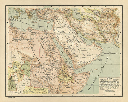 Old Arabic Map of the Middle East by Esref, 1893: Ottoman Empire, Jerusalem, Mecca, Arabian Peninsula