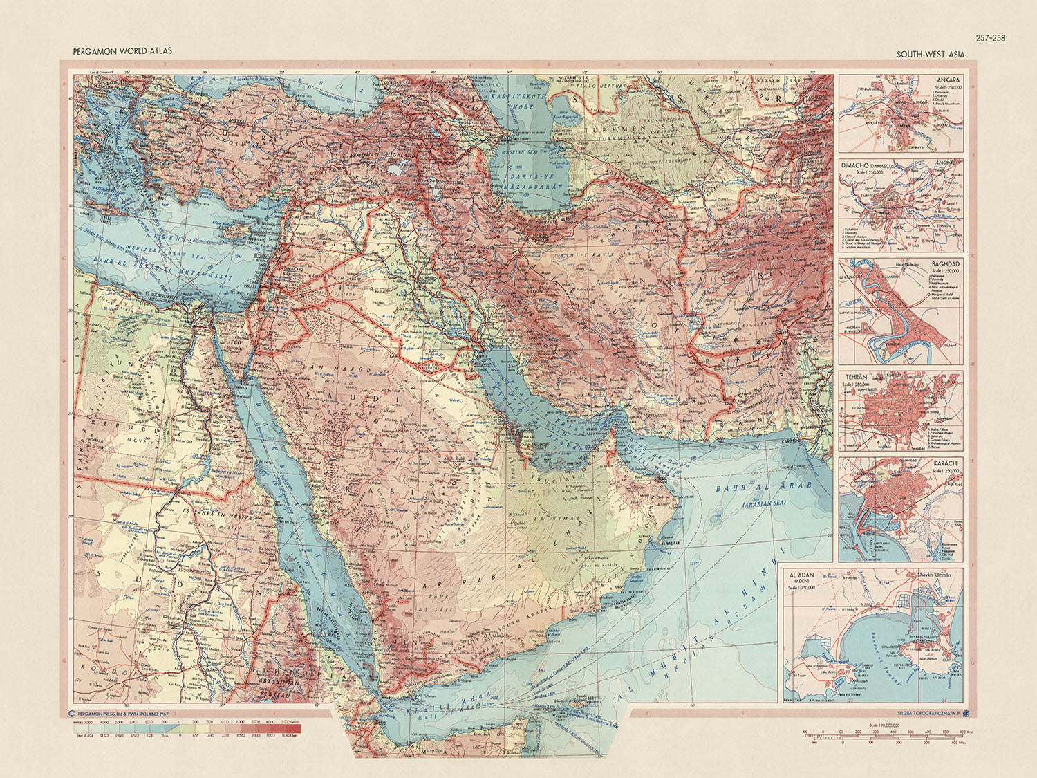 This South-West Asia map, originally published in 1967 by the Polish Army Topography Service, is a detailed political and physical map that provides a comprehensive overview of the region. The map encompasses a vast geographical area, encompassing the entirety of the Middle East, as well as parts of Europe, Asia, and Africa. This broad scope makes it an invaluable resource for understanding the geopolitical landscape of the region during the mid-20th century.