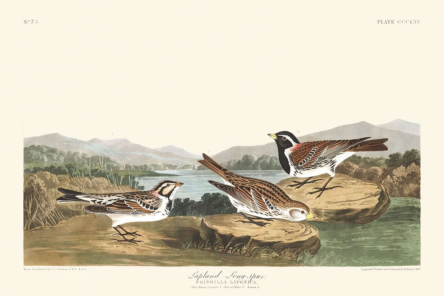 Lapland Long-spur, first published in 1827, is a captivating illustration from John James Audubon's renowned work, The Birds of America. This exquisite portrayal highlights the natural grace and intricate beauty of the Lapland Long-spur, a species known scientifically as Calcarius lapponicus. Audubon’s ability to capture the essence of American avifauna is on full display in this elegant illustration.