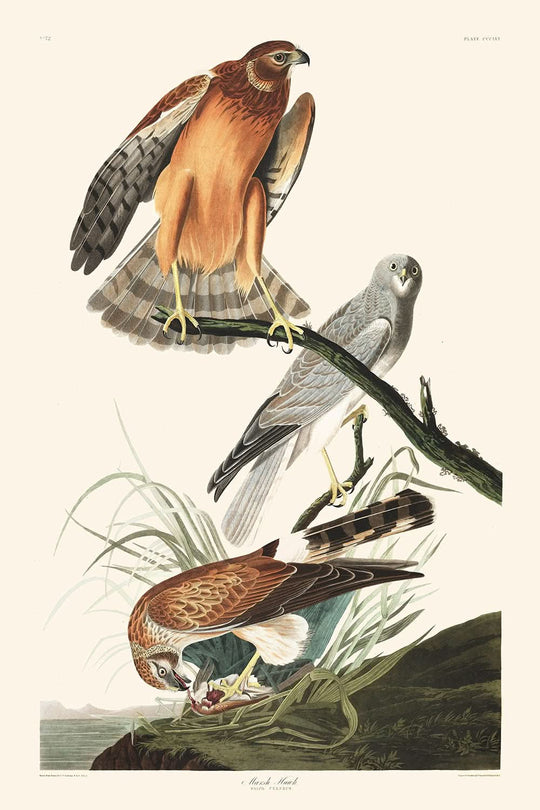 Observant naturalists may recognize the precise coloration and form, representing how carefully Audubon has captured the essence of the Marsh Hawk. Whether poised in a marshland or soaring across a vibrant prairie, the depth of artistry makes this piece an invaluable addition to any nature lover's collection.