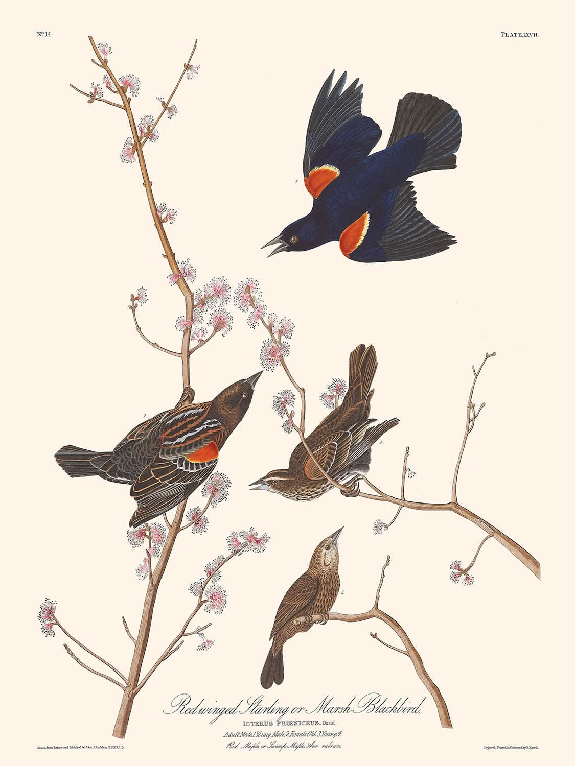 Red Winged Starling (Marsh Blackbird) by John James Audubon 1827