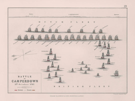 This remarkable fine art print of the "Battle of Camperdown" serves as a splendid gift choice for events like Christmas, Father's Day, or any occasion for someone with a fascination for historical narratives and the fine detail of cartographic art.