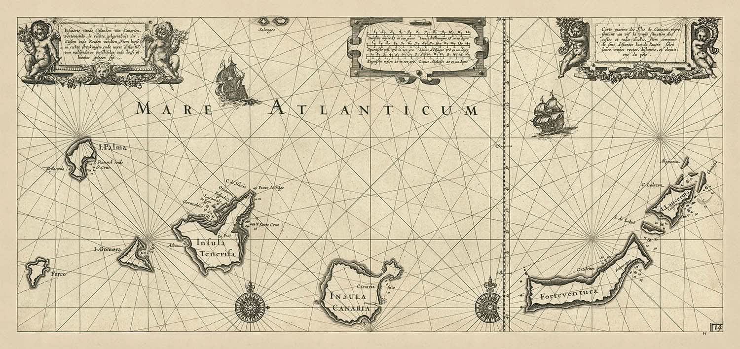 Old Canary Islands Nautical Chart by Blaeu, 1608: Lanzarote, Tenerife, Gran Canaria