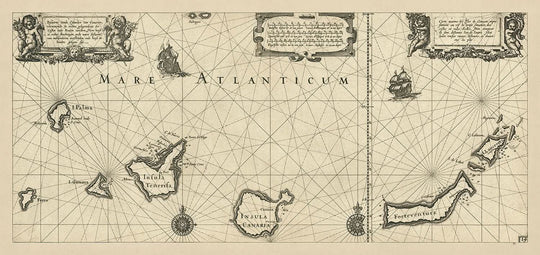 This map is more than just a navigational tool; it is a window into a bygone era of exploration and discovery. Its detailed depiction of the Canary Islands and the surrounding Atlantic Ocean captures the imagination and transports the viewer to a time when the seas were the lifeblood of commerce and adventure. Whether you're a collector, a history enthusiast, or simply appreciate the beauty of old maps, this piece is a remarkable addition to any collection.