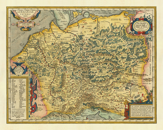 This map was published in 1624, at the height of the Age of Exploration. European cartographers were eager to learn more about the world around them, and Ortelius' map was one of the most accurate and comprehensive maps of Ancient Germany and North Europe available at the time.