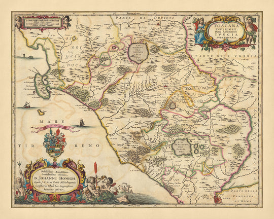 This map is not just a representation of geographical locations; it is a testament to the region's rich history and cultural heritage. It offers a unique perspective on the political and social landscape of the time, making it a valuable addition to any collection. The dedication to "Nobilissimo, Amplissimo, Consultissimo Domino, D. Johanni Honigh..." further adds to its historical significance. This map, with its intricate details and historical context, is more than just a decorative piece; it is a conversation starter, a source of inspiration, and a treasure trove of information.