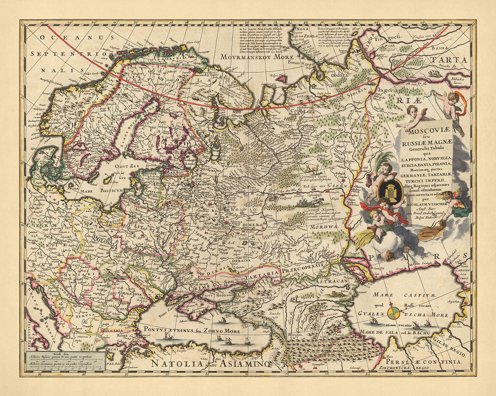 This map by Nicolaes Visscher II is more than just a geographical representation; it is a historical document that narrates the story of Russia and its surrounding regions in the late 17th century. It provides a fascinating look into the political divisions, major cities, and natural landscapes of the time. This map allows you to explore Russia and its neighboring regions as they were over three centuries ago, making it a valuable addition to any collection.