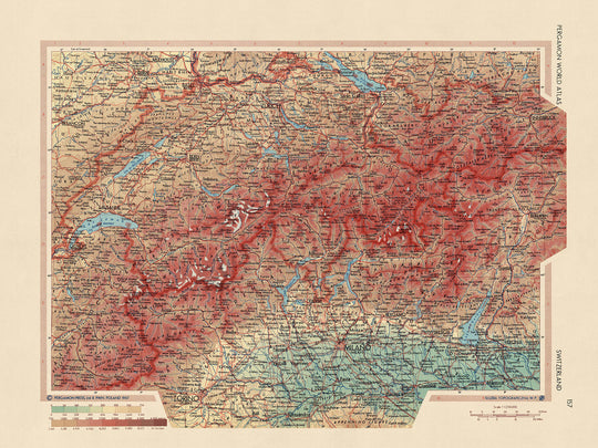 Switzerland, a country renowned for its breathtaking natural beauty, rich history, and cultural diversity, takes center stage in this meticulously crafted map, originally published in 1967 by the Polish Army Topography Service. This detailed political and physical map presents a comprehensive overview of Switzerland's geographical features, political boundaries, and significant landmarks, making it an invaluable resource for cartography enthusiasts, historians, and travelers alike.