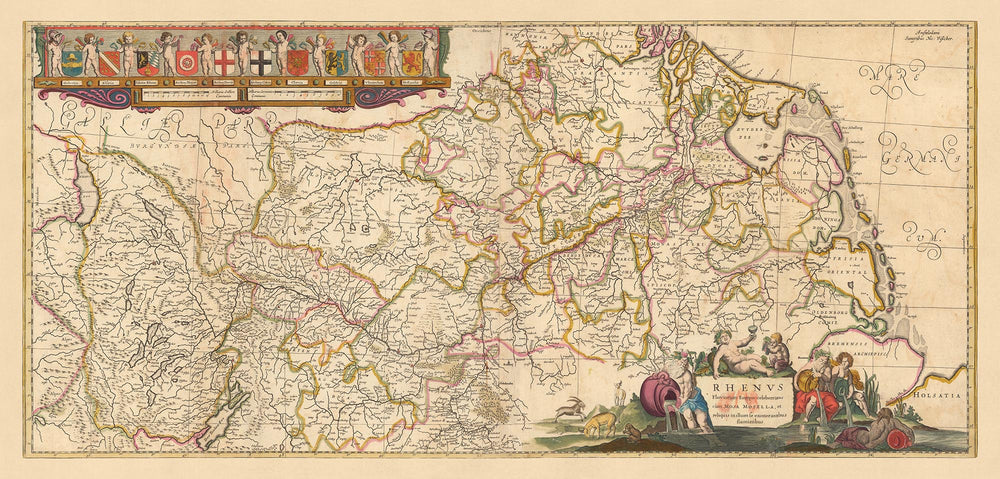 Lastly, the city of Cologne, one of Germany's oldest cities, is beautifully detailed. Known for its rich history and cultural heritage, Cologne's representation in the map underscores its significance during the period. This map, with its meticulous detail and historical accuracy, offers a unique perspective into the political and geographical dynamics of 17th century Europe. It's an exquisite piece that will add a touch of elegance and historical charm to any collection.