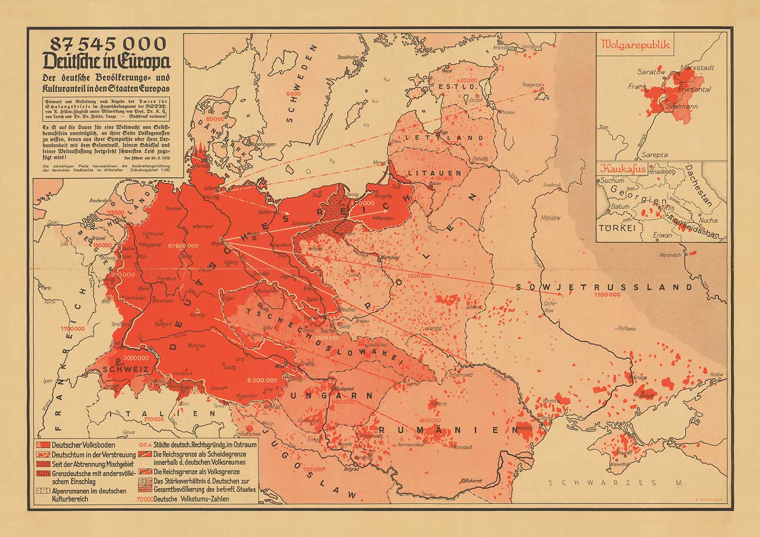 Old WW2 Propaganda Map, 1938: "87 545 000 Deutsche in Europa"