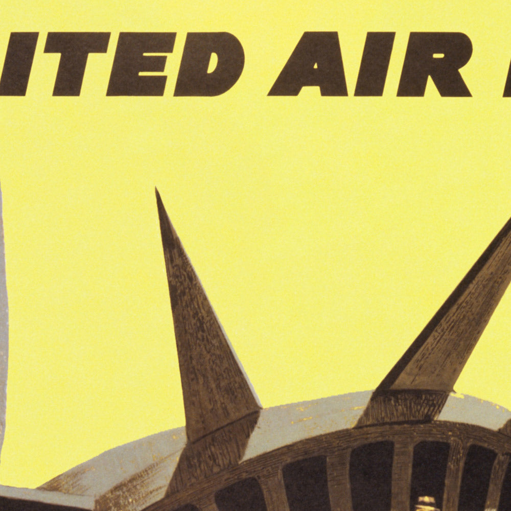 The subject here—New York, heralded by the Statue of Liberty—anchors the poster’s historical resonance. Lady Liberty has long been the emblem of arrival, welcome, and aspiration in New York Harbor; and by the 1960s, air travel had become the new gateway to the city. Galli’s pairing of a national symbol with airline branding speaks to that postwar moment when commercial flight reshaped how people encountered place, identity, and possibility.