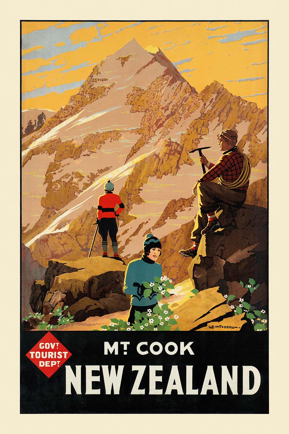 New Zealand Travel Poster: Mt. Cook by Leonard Cornwall Mitchell