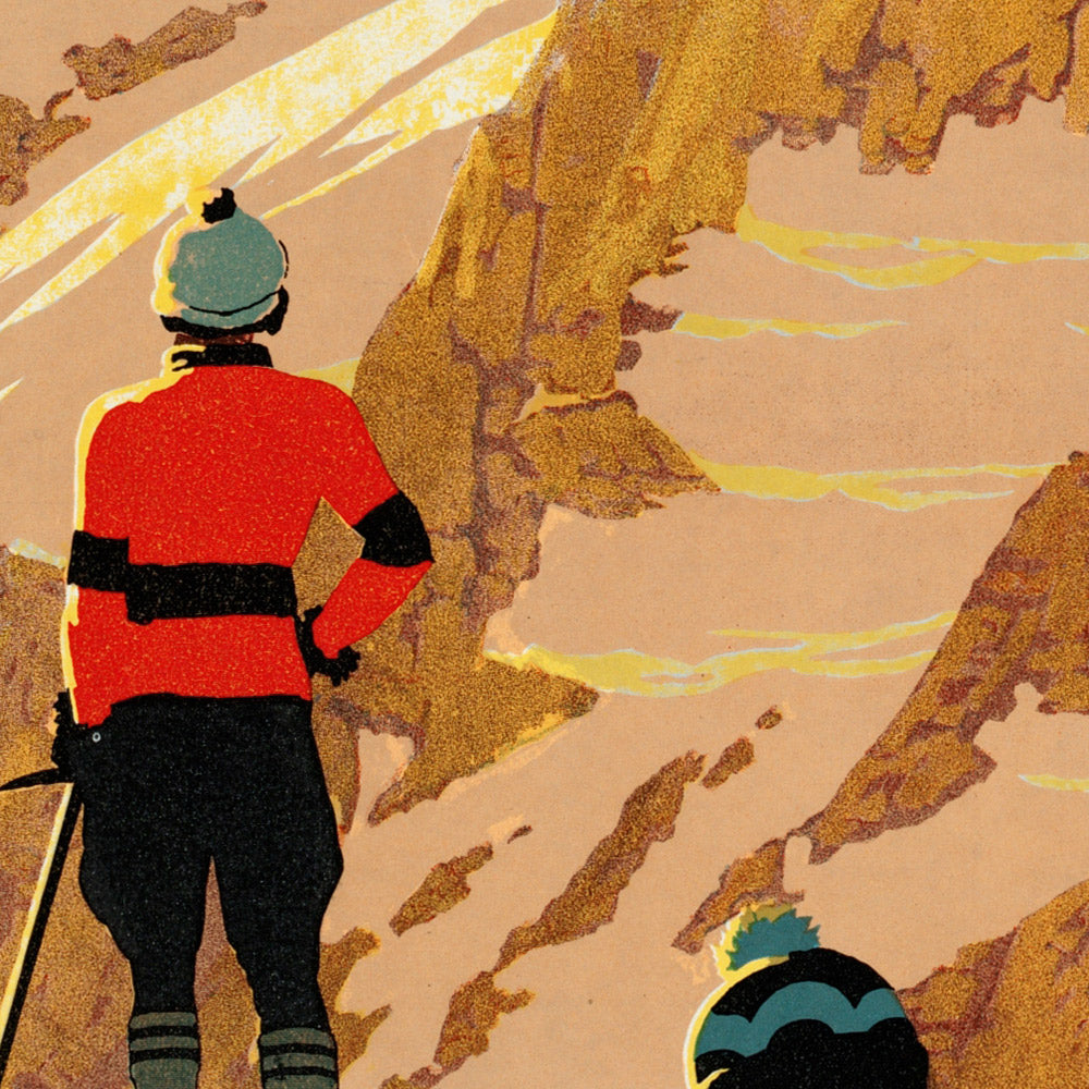 The subject here—Aoraki/Mount Cook, New Zealand’s highest peak—was a symbol of national pride and a magnet for adventurous travelers during the golden age of rail-and-steamship touring. This poster captures that moment: a time when guided ascents, alpine hotels, and improved transport opened the high country to visitors, and when posters like this turned distant horizons into irresistible destinations.