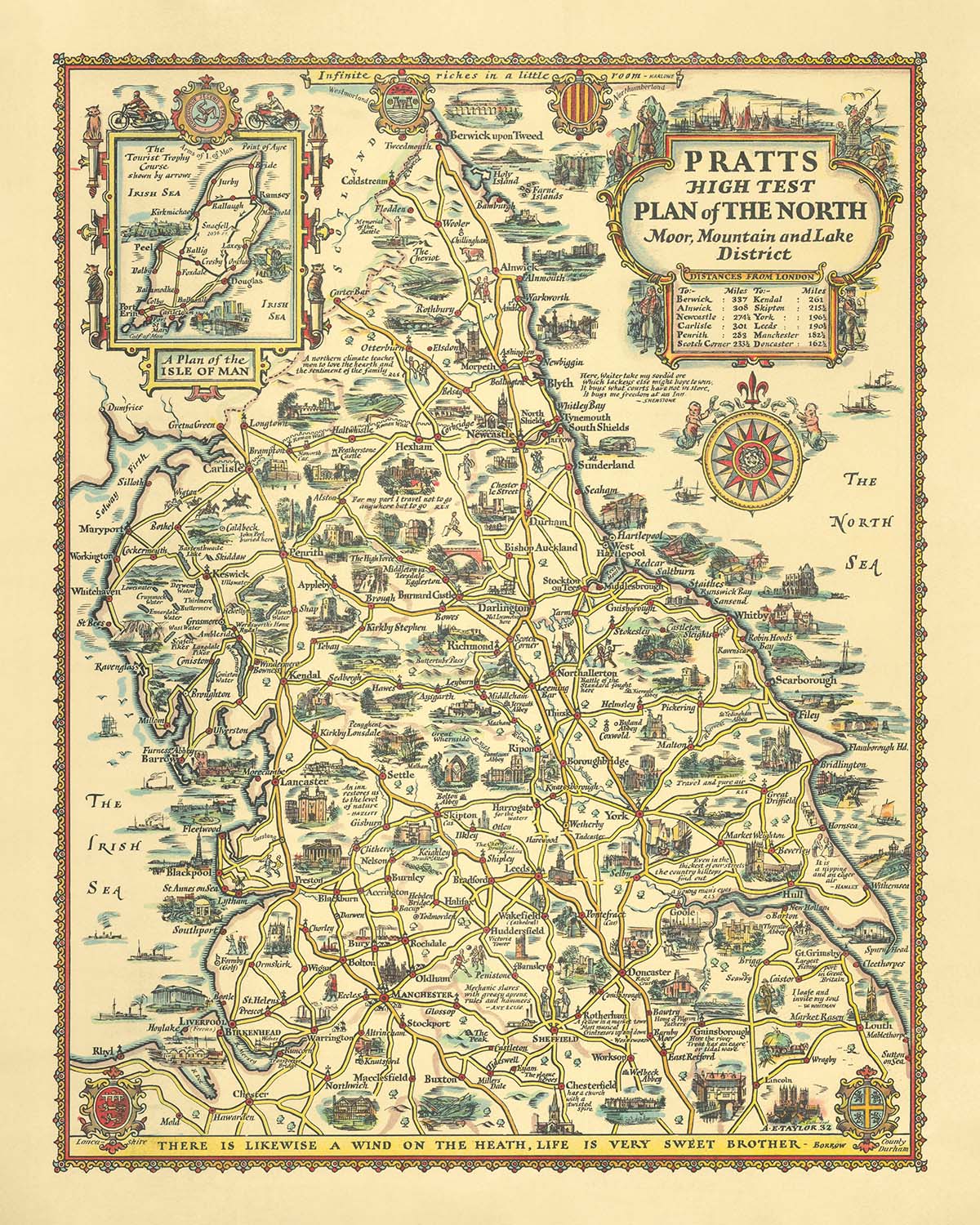 The historical context of this map is deeply intertwined with the development of road travel and tourism during the early 20th century. As a product of Pratt's Petroleum Company, the map underscores the growing importance of motoring culture, encouraging exploration and adventure. This map is not merely a representation of geography but a testament to an era where the open road beckoned travelers to discover the wonders of Northern England.