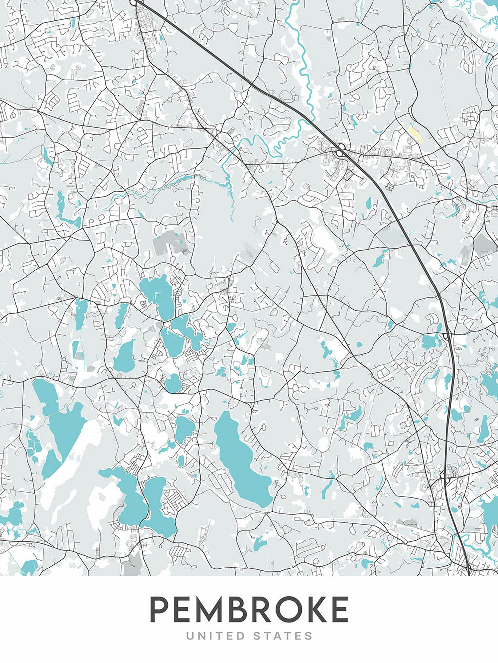Modern City Map of Pembroke, MA: Pembroke Center, Bryantville, North Pembroke, West Pembroke, Pembroke Pines
