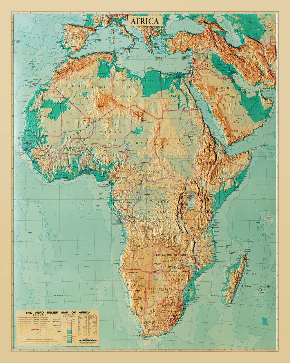 Old 3D Relief Map of Africa by Aero Service Corporation, 1961