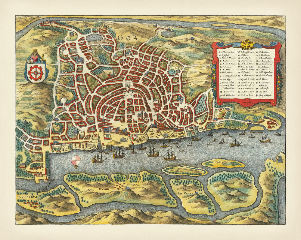 This birdseye view is not only a beautiful representation of Goa but also a significant historical document. It captures a moment in time when Goa was a thriving center of commerce and culture under Portuguese rule. The map’s artistic and historical value makes it a remarkable piece for collectors and history enthusiasts alike, offering a window into the past and a deeper appreciation of Goa’s rich heritage.