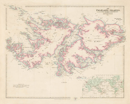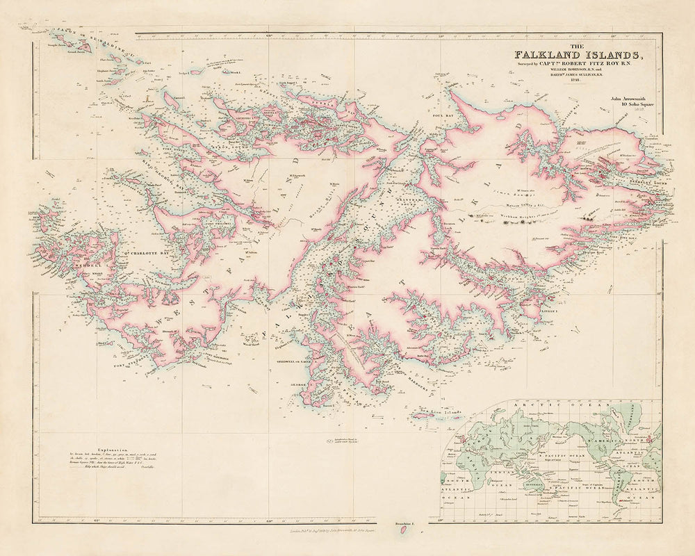 Incorporating both artistry and scientific precision, this map is a celebration of Arrowsmith's dedication to his craft. It stands as a remarkable piece of history, inviting viewers to explore the intricate details and immerse themselves in the rich tapestry of the Falkland Islands. Whether you are a cartography enthusiast or a lover of history, this map offers a unique opportunity to own a piece of the past, beautifully preserved through the eyes of one of history's great mapmakers.