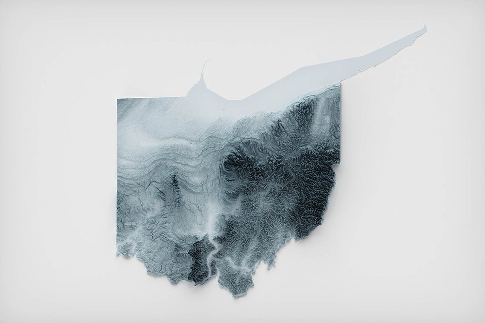 Celebrate the landscapes of Ohio, United States of America, with this intricately detailed relief map—a tribute to the Buckeye State’s subtle beauty and diverse geography. From the gentle undulations of the glaciated north to the rolling hills of the south, the map brings Ohio’s topography to life through delicate variations in height and shadow.
