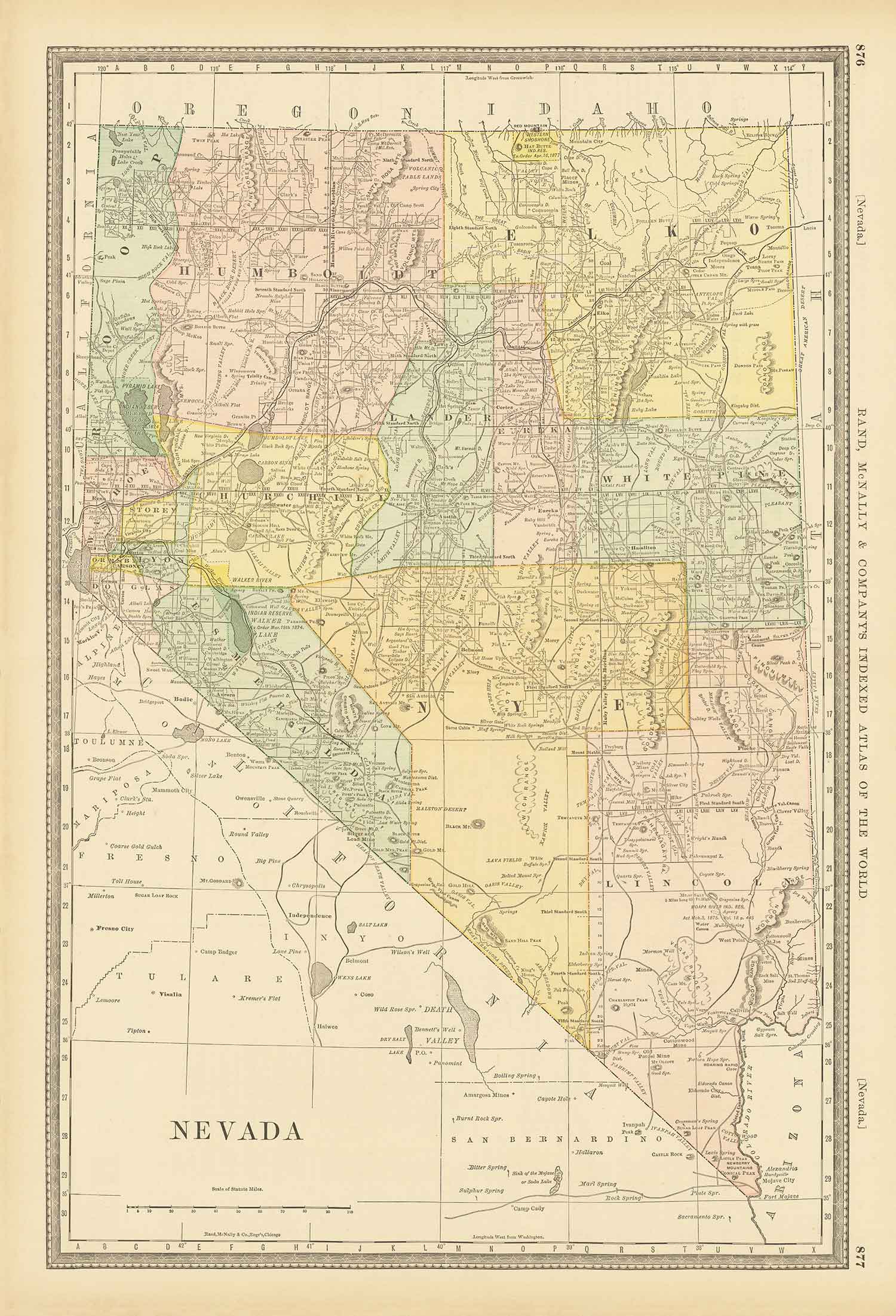 This wonderful old map of Nevada was originally published in 1882. It was created by Rand & McNally.