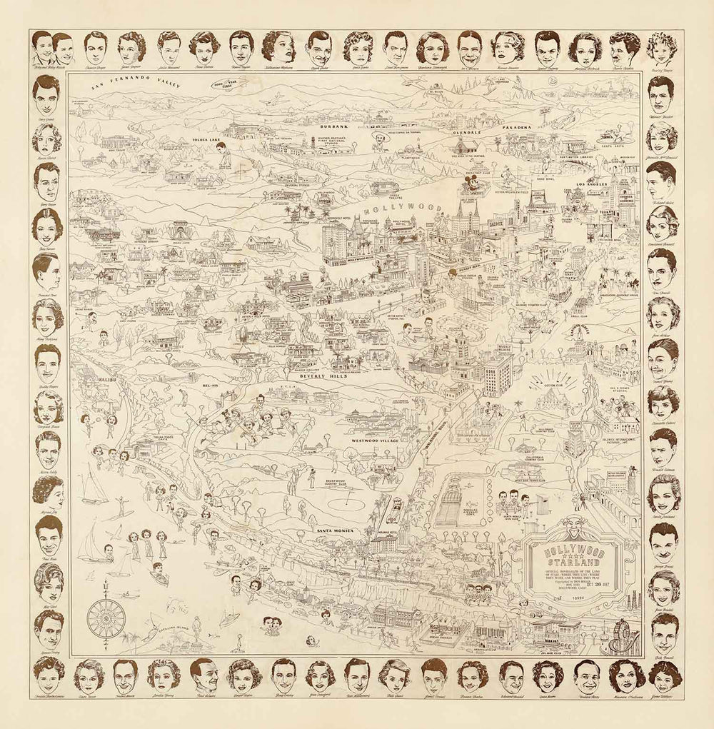 Old Pictorial Map of Hollywood Starland, 1937 by Don Boggs: Movie Stars, Film History, Beverly Hills, Santa Monica, Malibu