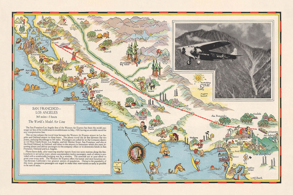 - Produced as a double-page pictorial map to advertise and inform about the air travel route between San Francisco and Los Angeles