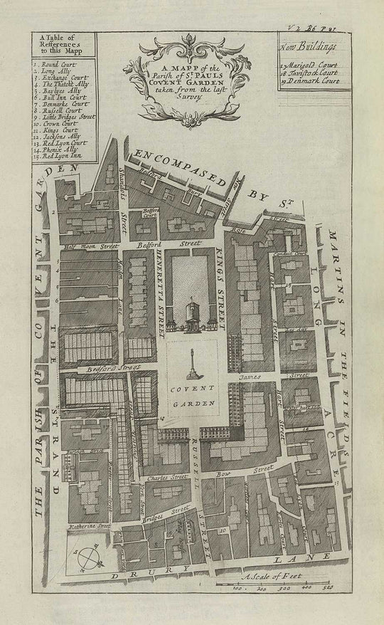 This wonderful old map of the Parish of St Pauls Covent Garden was originally published in 1720. It was created by John Strype & John Stow.