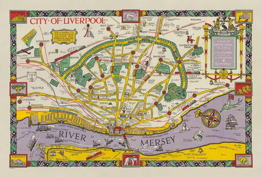 Old Map of Liverpool, 1934 by GH Parry: Pictorial City Chart