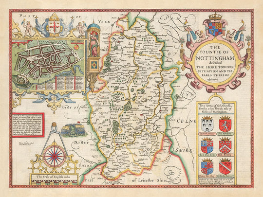 Old Map of Nottinghamshire, 1611 by John Speed: Nottingham, Mansfield, Newark, Worksop