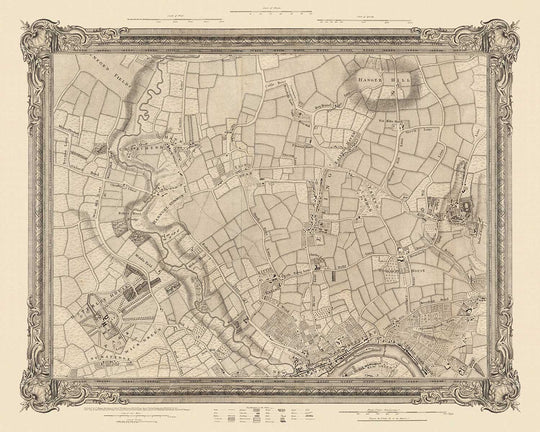 Published almost 300 years ago by master mapmaker John Rocque, this is the first detailed map of West London. It was originally published in 1746, following a highly accurate survey of London and its suburbs starting in 1740. It is a beautiful, highly detailed and extremely rare old map.