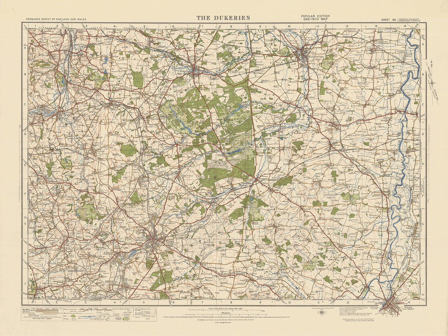 Old Ordnance Survey Map, Sheet 46: The Dukeries, 1925: Mansfield, Worksop, Sutton-in-Ashfield, Newark-on-Trent, Retford