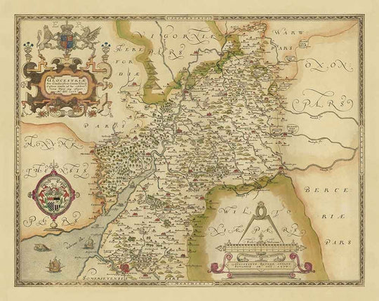 Created almost 450 years ago, this is the first ever printed map of Gloucestershire. It was originally published by Christopher Saxton, the father of British cartography. It is a beautiful, highly detailed and extremely rare old map.